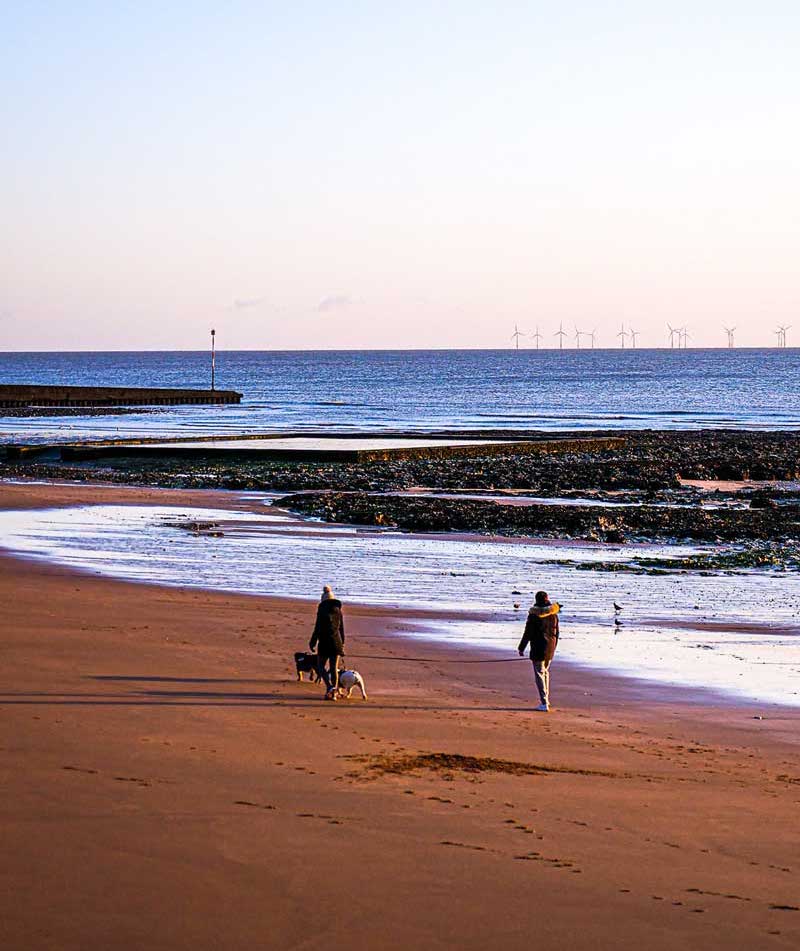 Down to the beach with bats, balls, nets, buckets and spades, the sea stretches far and wide and, on a clear day, France is visible across the water, as well as a fleet of white wind turbines.